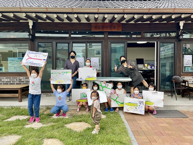 성동·황오지역의 어린이들이 고사리 손으로 자신들이 살고 있는 마을 지도를 직접 만들고 있다.