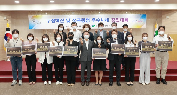 대구 북구청(청장 배광식)은 9월 17일(금) 오후 3시 구청 4층 대회의실에서 「2021 구정혁신 및 적극행정 우수사례 경진대회」를 개최하였다.