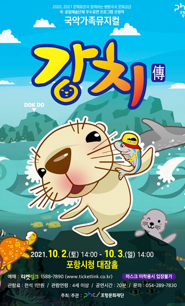 뮤지컬 ‘강치전’은 티켓링크를 통해 예매 가능하며 백신접종 할인 및 다양한 할인을 마련해 코로나19로 지친 지역민들에게 재미와 희망을 전할 계획이다.