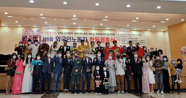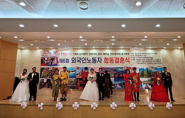 (사)꿈을이루는사람들(대표 진오스님)은 고향을 떠나 타국에서 부부의 연을 맺은 외국인노동자 부부들이 결혼식을 통해 심리적 안정감을 가질 수 있도록 외국인노동자 합동결혼식을 9. 26(일) 구미상공회의소 강당에서 개최했다.