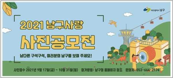 대구광역시 남구청(구청장 조재구)에서는 남구의 관광자원, 축제, 문화행사 등 남구의 매력을 알리기 위해 남구사랑 사진공모전을 개최한다고 밝혔다.