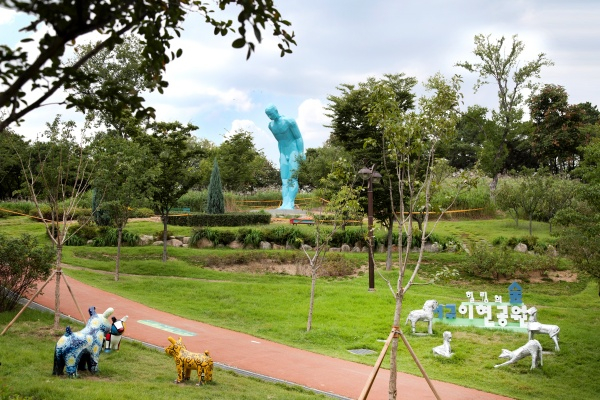 | ↑↑ 서구 이현공원에 설치된 그리팅맨 사진. |