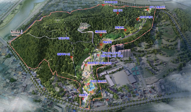 주요 도입시설은 산책로, 광장, 물놀이시설, 흙놀이터, 초록쉼터, 네트어드벤처 등이 있으며, 그동안 급경사로 인해 이용이 불편했던 황산을 다양한 산책로와 데크길 조성으로 주민들이 자유롭게 이용할 수 있게 접근성을 높일 계획이다.