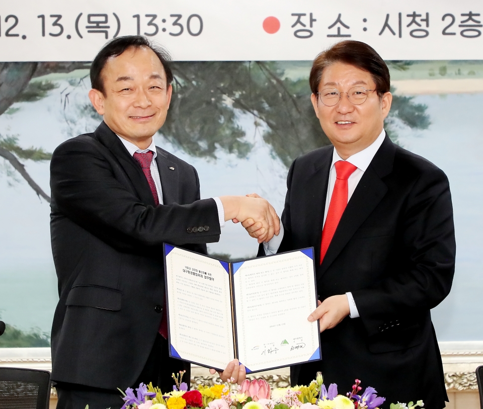 대구시와 한국수자원공사는 지난 13일 오후 1시 30분에 시청 2층상황실에서 환경 관련 행사의 통합 개최에 합의하며, 성공적인 시행을 위한 업무협약을 체결했다.
