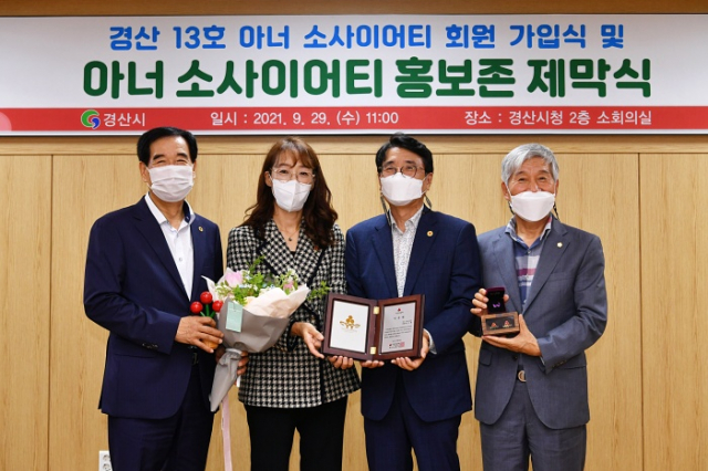 경산시 진량읍 소재 승원치과 예선혜 대표원장이 29일 경산시청 소회의실에서 최영조 경산시장, 이기동 경산시의회 의장, 전우헌 경북사회복지공동모금회장, 경산시 아너 회원들과 가족들이 참석한 가운데 1억 원 이상 개인 고액 기부자 모임인 '아너 소사이어티' 회원 가입식을 가졌다.