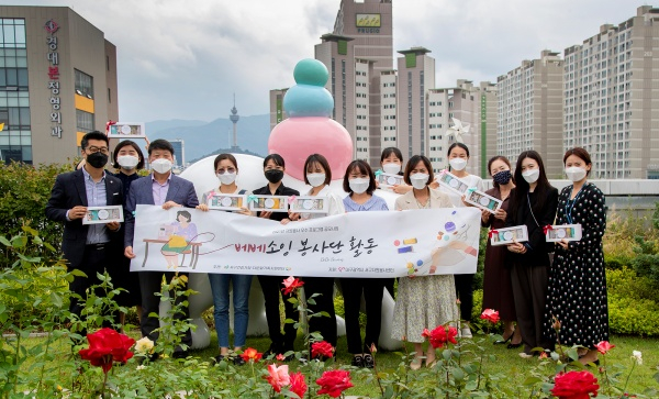 ‘베베소잉 봉사단’은 28일 서구청을 방문하여 직접 만든 영유아 스카프빕 50상자(상자당 5개입)을 전달했다.