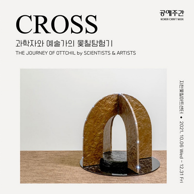 ‘CROSS, 과학자와 예술가의 옻칠탐험기’는 2021 공예주간 프로그램이다. 앞서 서울 KCDF 갤러리에서 성황리에 전시를 마친 데 이어 지천옻칠아트센터에서 연말까지 전시를 이어간다. 전국 634곳의 참여기관에서 1013개 행사가 진행되는데, 경북에서는 총 9개 기관이 참여한다. 지천옻칠아트센터의 이번 전시는 상주시에서 유일하게 진행되는 프로그램이다. 코로나19의 사회적 거리두기 방역 지침에 따라 별도의 오프닝 행사 없이 예약제로 운영된다.