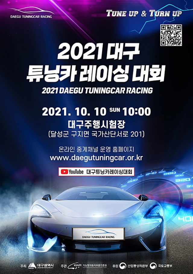 ‘2021 대구 튜닝카 레이싱 대회’가 10월 10일(일) 대구 주행시험장에서 개최된다. 올해 대회는 코로나19 상황을 고려해 무관중으로 치러지며 대회 공식 홈페이지(www.daegutunningcar.or.kr) 및 유튜브를 통해서 실시간으로 중계된다.