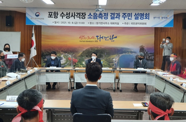 국민권익위원회는 8일 장기면행정복지센터에서 포항 수성사격장 소음측정결과 주민설명회를 개최하고, 지난 6월3일부터 7월9일까지 27일간 민관군이 합동으로 사격장 인근 장기면 6개소에서 3개 측정기관이 동시 측정한 소음 측정 결과를 발표했다.