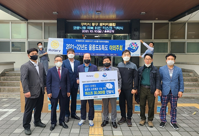 울릉․구리시 동구 로타리클럽에서는 울릉군에 신종코로나 바이러스 감염증(코로나19)대응 마스크 3만장(7백만원 상당)을 10일 전달했다.