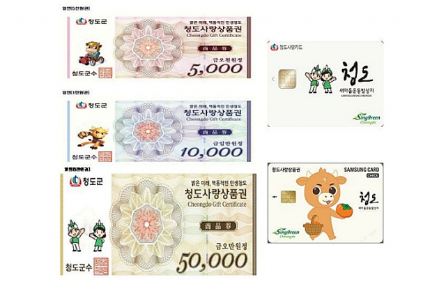 올해 청도사랑상품권은 연초 120억원을 시작으로 80억원이 추가되어, 총 200억원이 발행되었으며, 지난 10월 7일 모두 완판되어, 가정 경제와 지역 경제에 많은 도움을 주고 있다.