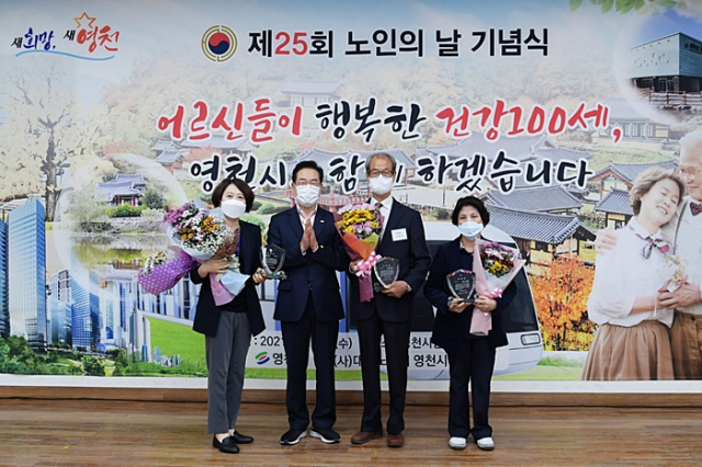 영천시(시장 최기문)는 지난 13일 영천종합복지센터 강당에서 제25회 노인의 날 기념행사를 개최했다. 영천시 주최하고, 사)대한노인회영천시지회가 주관한 이날 행사는 코로나19로 인해 방역수칙 준수 하에 수상자 중심 최소 인원으로 진행됐다.