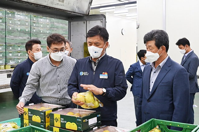 지난 10월 13일 개최된 ‘2021년산 청송 황금사과 론칭 기념행사’에 참석한 윤경희 청송군수는 황금사과가 선별·포장 작업을 거쳐 출고되는 능금농협청송APC 현장을 둘러보며,