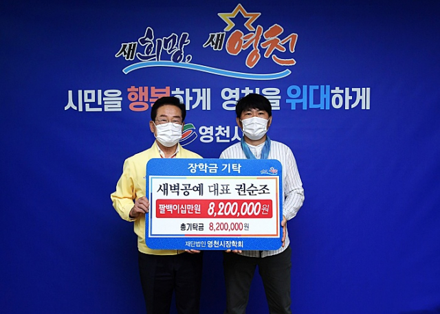 북안면 반정리에서 ‘새벽공예’라는 공방을 운영 중인 권순조 대표가 지난 9월 1일부터 14일까지 시민회관에서 열린 공예품 바자회에서 자신이 기증한 작품들을 판매한 수익금 전액인 820만원을 영천교육 발전을 위한 장학기금으로 13일 (재)영천시장학회(이사장 최기문)에 기탁했다.