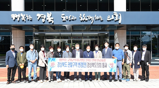 군위군의회는 경북도의회 재적의원 59명 중 찬성 36표, 반대 22표, 기권 1표로 “경상북도 관할구역 변경(안)”이 찬성으로 통과되자 환영하고 축하하였다.