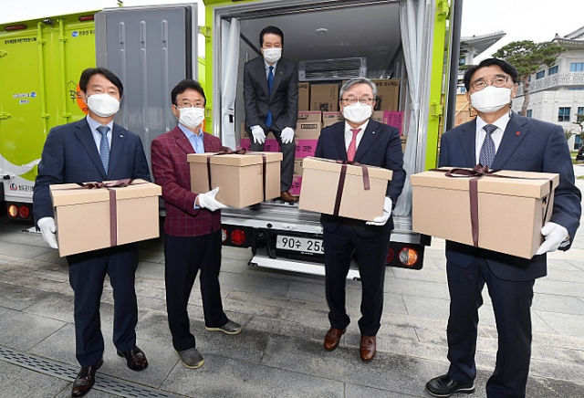 경상북도는 DGB금융지주(회장 김태오)와 함께 15일 도청 전정에서, 친환경 냉동트럭과 생필품 전달식을 개최했다고 밝혔다.