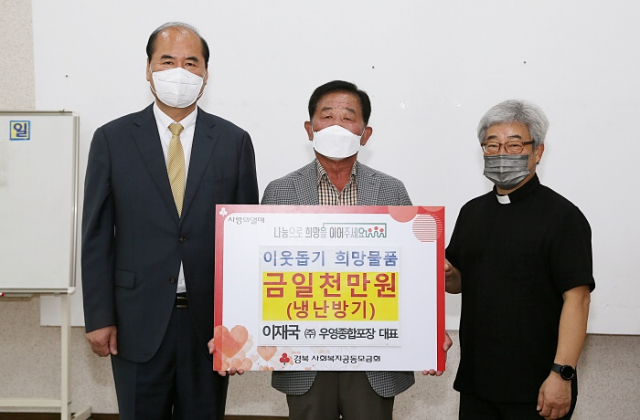 상주 출신인 이재국 (주)우영종합포장 대표가 15일 무료급식소 냉난방기 설치 비용으로 1천만원을 기탁했다.