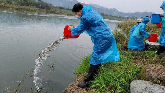 코로나19 확산방지를 위한 방역수칙을 준수하며 시행한 이날 행사에서 방류한 잉어, 붕어 등 민물고기는 3개월 이상 사육한 우량치어로 서식환경 악화에 따라 점차 사라져가는 어족자원 조성에 큰 도움이 될 것으로 보인다.