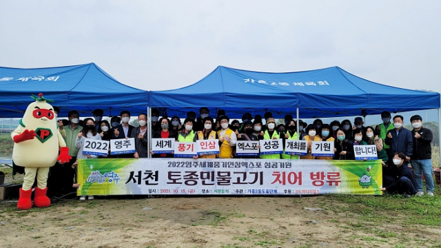 영주시 가흥2동은 15일 2022영주세계풍기인삼엑스포 성공개최를 기원하고 하천생태 보존과 자연사랑 실천을 위해 토종민물고기 치어 5만 마리를 서천에 방류했다.