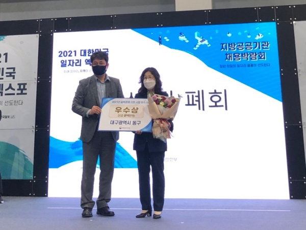대구 동구청(구청장 배기철)은 지난 14일 서울 양재aT센터에서 열린 ‘2021년 골목경제 지원사업 우수사례 발표대회’(행정안전부 주관)에서 우수상을 수상했다고 밝혔다.