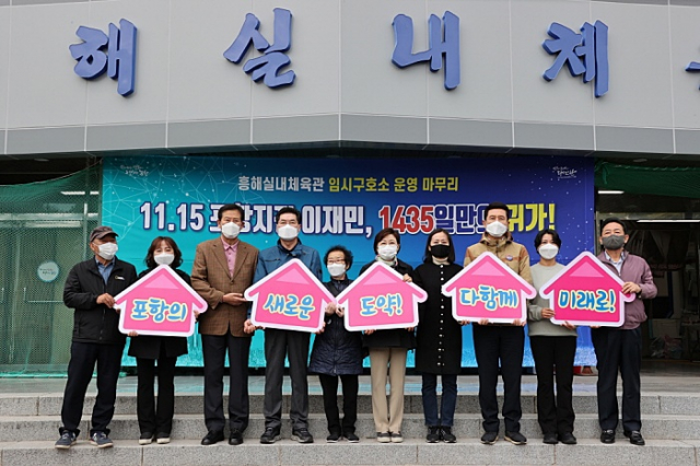 이로써 지열발전에 의해 촉발지진이 발생된 지 4년이 되기 전에 이재민의 임시구호소 생활이 모두 마무리돼, 흥해실내체육관은 내부 정비를 거쳐 본연의 기능인 체육공간으로서 흥해읍 주민의 품으로 돌아갈 수 있게 됐고, 시는 지진의 지난 상처를 딛고 한층 더 도약하는 새로운 출발선 위에 서게 됐다.