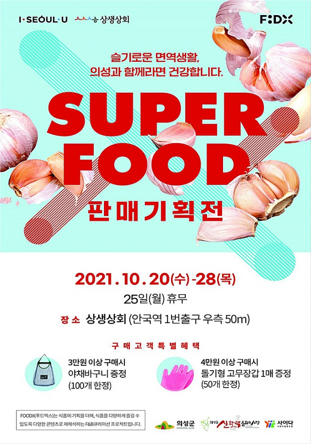 의성군(군수 김주수)이 농특산물의 판로 개척을 위해 지난 20일부터 오는 28일까지 8일간의 일정으로 의성 슈퍼푸드(SUPER FOOD) 판매기획전을 개최하고 있다.