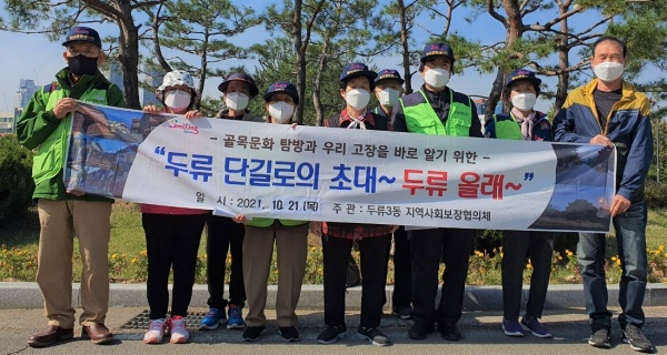 대구 달서구 두류3동(동장 김명록), 두류3동 지역사회보장협의체(위원장 남윤덕)는 지난 21일 관내 골목투어를 통해 우리 지역을 바로 알기 위한 ‘두류 단길로의 초대, 두류올래’ 사업을 관내주민 20여 명과 추진했다고 밝혔다.