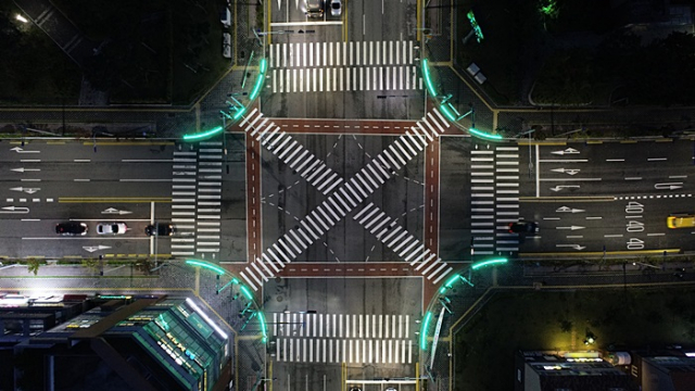 『대각선 횡단보도』는 보행전용 신호를 주어 보행자가 원하는 방향으로 한 번에 횡단할 수 있게 한 보행 친화적 교통시설이다. 보행자의 횡단 시간 단축으로 만족도가 크고, 교차로 내 전 차량 운행이 정지되어 횡단보도 내 교통사고가 예방되는 장점이 있다.