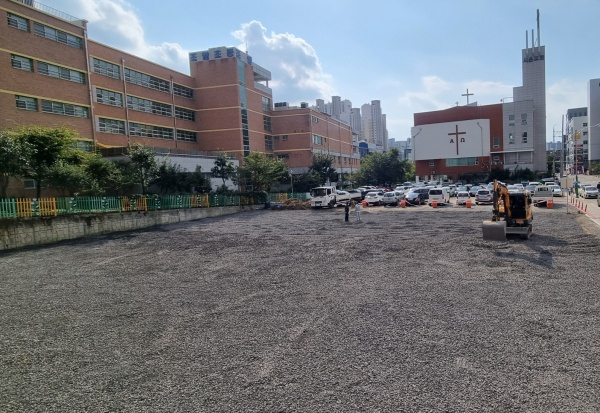 | ↑↑ 달서구 월성1동, 임시 공영주차장 확장 공사 모습. |