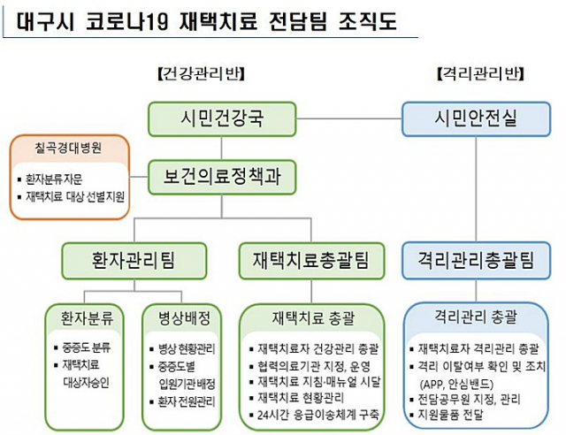 대구시는 재택치료 시행에 따라 칠곡경북대병원의 의료진 협력을 통해 환자 중증도 분류를 강화해 체계적인 운영시스템을 마련하고 있다.