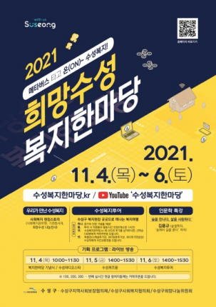 대구 수성구(구청장 김대권)는 오는 11월 4일부터 6일까지 수성구지역사회보장협의체, 수성구사회복지협의회, 수성구희망나눔위원회의 공동 주관으로 ‘2021 희망수성복지한마당’ 행사를 개최한다.