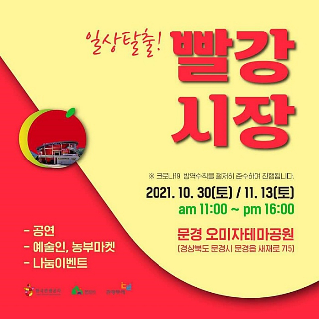 문경새재관리사무소(소장 천도진)는 10월 30일(토) 문경오미자테마공원에서 문경에서 만나는 일상탈출 ‘빨강시장’ 플리마켓을 개최한다.