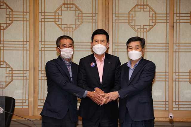| ↑↑ 왼쪽부터 최태진 조합장, 이강덕 포항시장, 노진목 대표 |