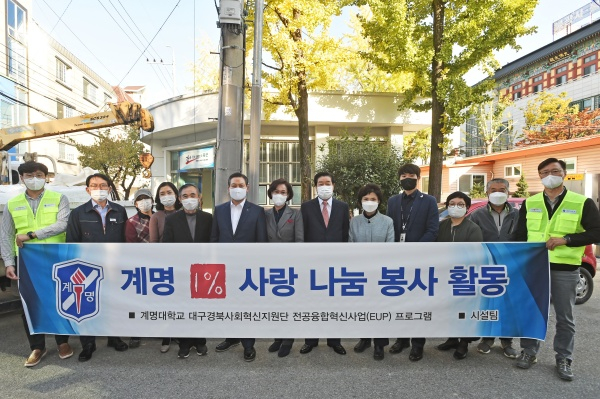 이번 무상지원은 계명1% 사랑 나눔 봉사 활동으로 이루어진 것으로 계명1% 사랑 나눔 봉사 활동은 2004년부터 계명대학교 교직원 900여 명이 자발적으로 월급의 1%를 봉사활동 기금으로 조성하여 현재까지 지역사회 어려운 이웃을 위해 봉사활동을 이어오고 있다.