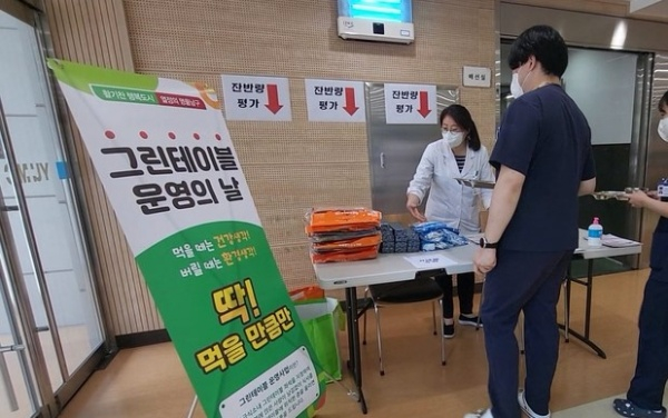 대구광역시 남구청(구청장 조재구)은 지난 29일 영남대학교병원 급식소에서 음식물쓰레기 감소를 위한 홍보활동 및 ‘그린테이블 운영’ 사업을 추진했다.