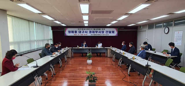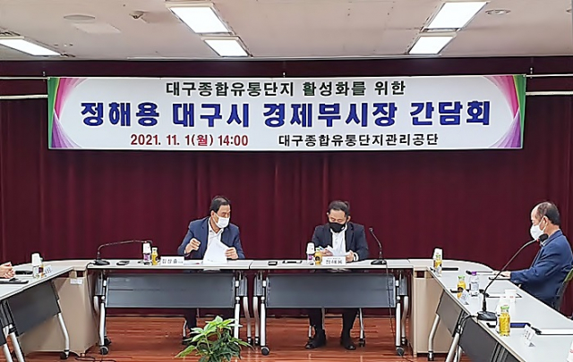정해용 대구시 경제부시장이 1일 오후 종합유통단지관리공단을 방문해 김상출 이사장 및 임원들과 간담회를 가졌다.
