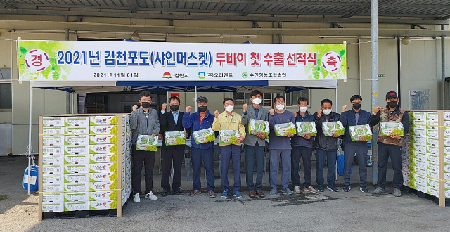 김천시는 지난 11월 1일 김천 소재 수출업체인 ㈜오리엔트와 수인영농조합법인 소속 농가에서 생산한 샤인머스켓 160박스/4kg를 중동 두바이 시장에 첫 수출했다고 밝혔다.