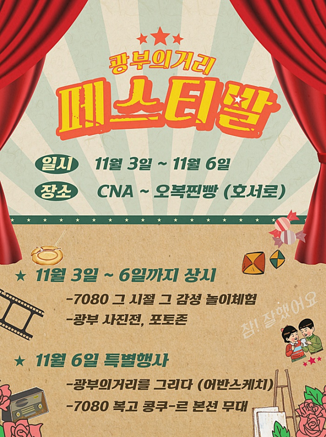 11월 6일, 토요일에는 문화의 거리 파머스 마켓과 연계해 7080 복고 콩쿠르가 개최되며 해당 콩쿠르는 11월 5일, 예선을 거쳐 6일 본선이 진행된다. 또한 3일~5일 어린이 체험 투어가 끝나고는 일반인도 해당 투어를 즐길 수 있게 진행된다.