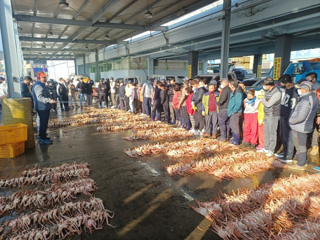 특유의 담백한 맛과 향으로 대한민국 최고의 특산품 중 하나인 ‘영덕대게’가 지난 2일 강구수협 위판장에서 첫 위탁 판매됐다.