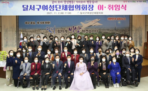 대구 달서구(구청장 이태훈)는 달서구여성단체협의회가 지난 2일 달서구청 2층 대강당에서 제18대 회장 이·취임식을 개최했다고 밝혔다.