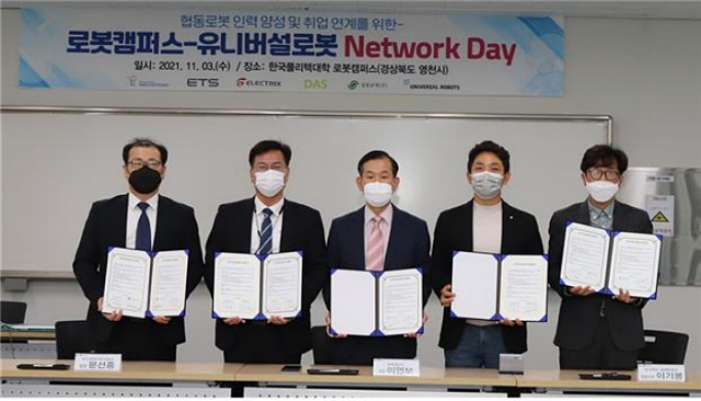 한국폴리텍대학 로봇캠퍼스(이하 로봇캠퍼스)는 3일 로봇분야 세계 최대기업인 유니버설로봇사(이하 UR사(社)) 및 주요 파트너사 4곳*이 참여한 가운데 “UR 네트워크데이” 행사를 가졌다.