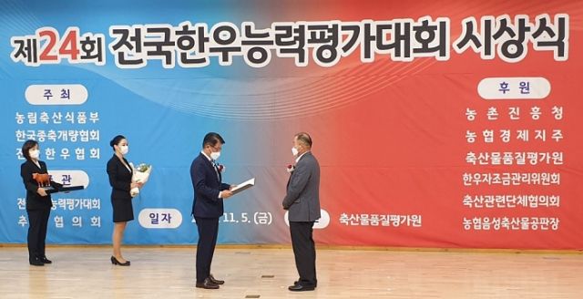 이번 대회는 지난 10월 11일부터 13일까지 충북 음성축산물공판장에서 진행되었으며 총 12마리의 한우가 수상축에 선정되어 5일 세종시 축산물품질평가원에서 시상식이 진행되었다.