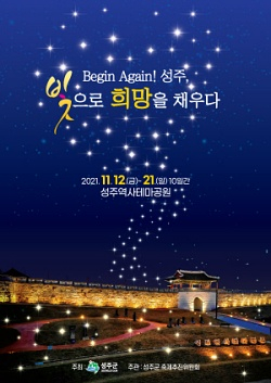 성주군은 11.12.(금) ~ 11.21.(일)까지 10일간 성주역사테마공원 일원 에서 일상회복 힐링 프로젝트 “비긴어게인! 성주, 빛으로 희망을 채우다” 행사를 개최한다.