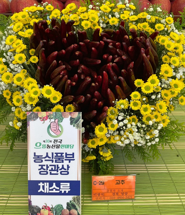 본 행사는 으뜸농산물품평회와 직거래장터, 각종 이벤트 와 홍보행사 등이 진행되었으며, 특히, 전국 17개 시․도 농업경영인연합회가 출품한 농산물을 부문별(곡류, 과일류, 채소류, 특작류, 화훼류, 특별품목 등)로 분류하여 품질 평가 후 우수작에게 농림축산식품부장관상과 한농연중앙회장상 등을 수여하였다. (사)한국농업경영인영양군연합회(회장 조호기)는「채소류 부문」에 영양고추를 출품하여 당당하게 대상을 수상하는 쾌거를 이루었다.