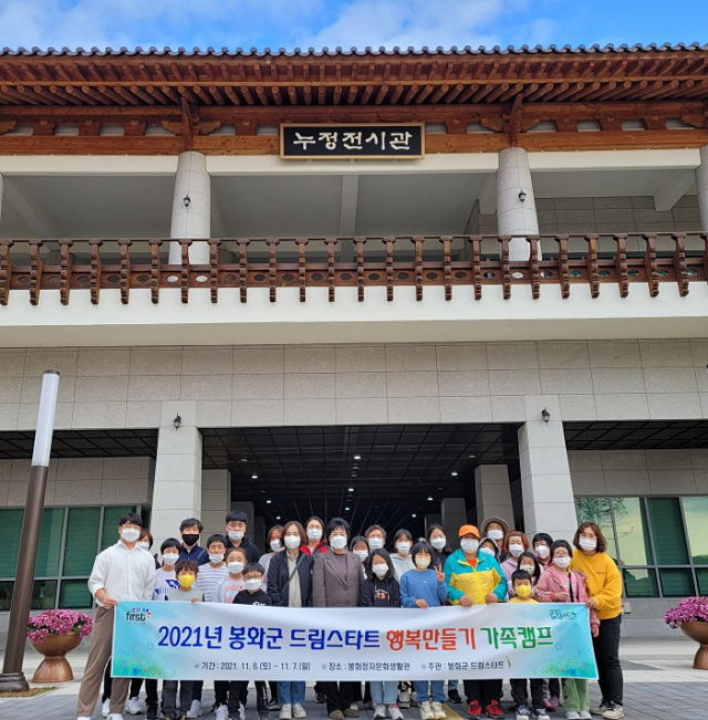 봉화군 드림스타트는 11월 6일에서 7일까지 1박 2일 간 봉화정자문화생활관에서 드림스타트 대상 아동 10가정, 37명이 참여한 가운데 드림스타트 행복만들기 가족캠프를 실시했다.