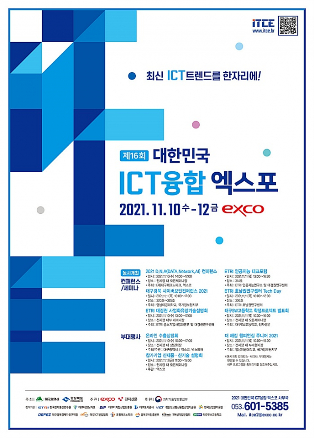 전시회 참가 문의 및 자세한 사항은 053-601-5385 또는 2021 대한민국 ICT융합 엑스포 홈페이지(www.itce.kr)를 통해 확인할 수 있다.