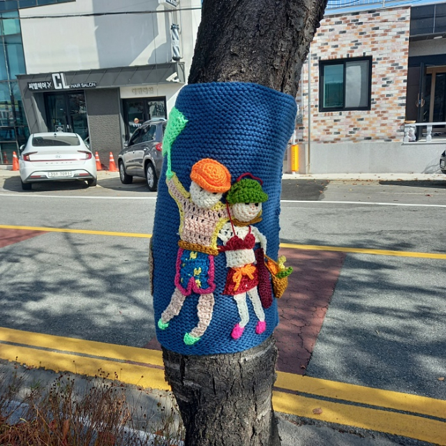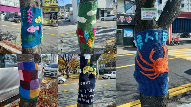 알록달록 손뜨개옷으로 단장한 영덕읍 덕곡천길 가로수가 행인의 마음을 사로잡고 있다. 산책과 휴식을 즐기던 주민들은 이색적인 풍경에 환호하며 휴대폰으로 촬영하고 카톡과 인스타그램 등 저마다의 SNS에 사진과 영상을 올리느라 분주하다.