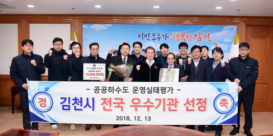 김천시(시장 김충섭)는 환경부에서 실시한 2018년도 공공하수도 운영관리 실태평가에서 전국 우수기관으로 선정돼 지난 13일 환경부로부터 인증패와 시상금 1천만원을 수상했다.