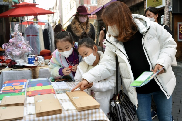 ‘로드마블’은 간단한 놀이 미션을 수행하며 대명공연거리 골목 구석구석을 돌아 볼 수 있는 체험프로그램으로 전체 체험을 모두 마치면 공연예술단체에서 준비한 소정의 기념품을 받을 수 있었다.