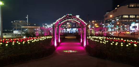 포항시(시장 이강덕)의 새로운 명소로 자리 잡은 영일대 장미원이 17일 겨울을 맞아 LED장미원으로 다시 태어났다.